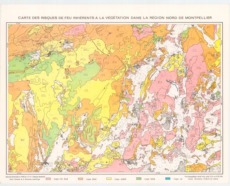 RésuméLocalisation des risques de feu inhérents à la végétation dans la région nord de Montpellier. Organisme : CNRS-CEPE